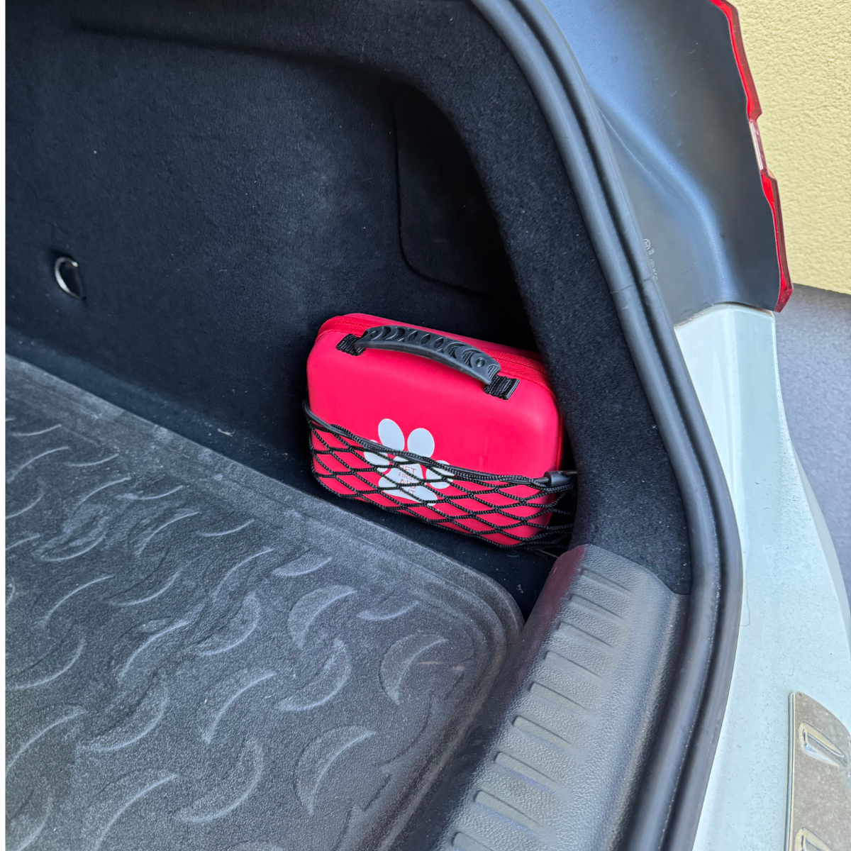 Water-resistant hard-shell case for car, hikes, trips & daily walks.